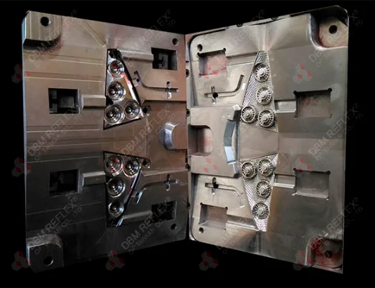 DBM提供符合ECE R27或AIS 022三角警示牌模芯與模具一條龍服務,模芯與模具由DBM製作並在廠內注塑後提供合乎法規的樣品給客戶組立後送認證。有多種的PIN排佈造型的三角警示牌可供選擇。